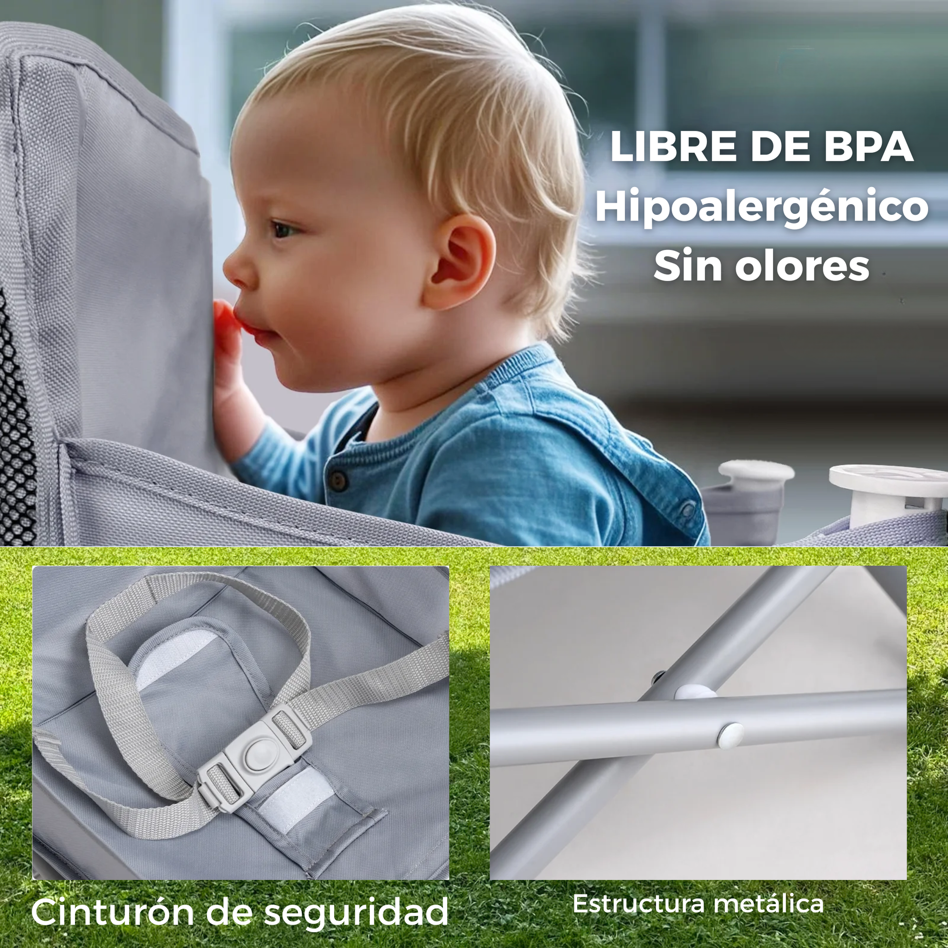 - 🔒 Cinturón de seguridad infantil que protege a tu bebé y previene caídas.